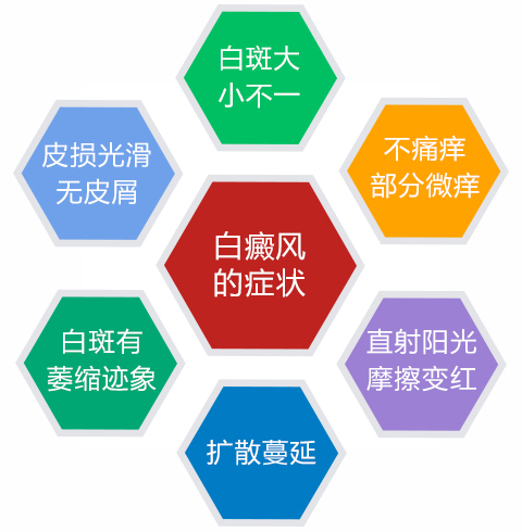 无色素痣多在出生时或出生后不久发病,其白斑可随身体发育而按比例扩大,往往会沿神经阶段分布,在四肢多成条状或带状,躯干可呈方形,这是比较明显的特点。